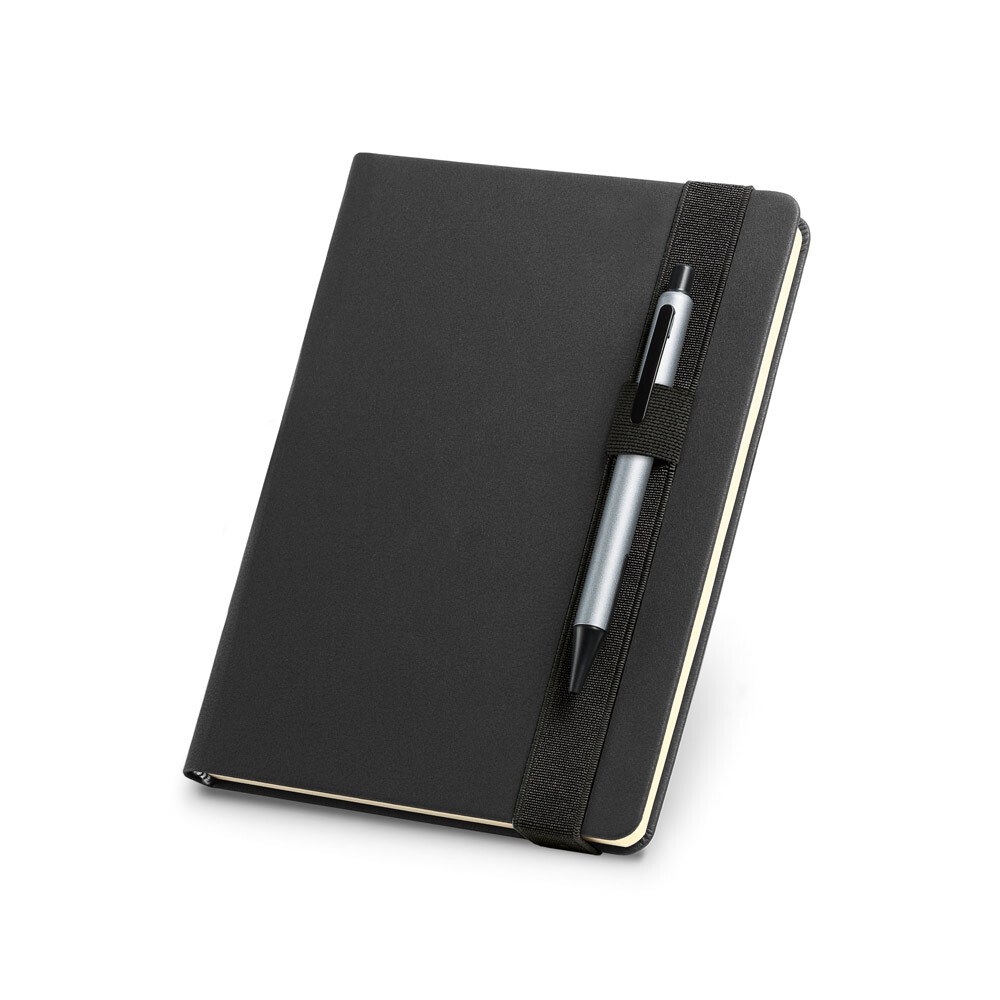 Experience effortless organization with our sophisticated A5 notepad. The sleek PU hardcover offers a professional look and feel, while the 280 smooth, ivory-colored pages provide ample space for your thoughts, notes, and ideas. Crafted from FSC™ certified and other controlled materials, this notepad reflects our commitment to sustainability. The integrated pen holder ensures your writing tool is always at hand (pen not included), and the elastic band closure keeps your notes secure.The included non-woven pouch adds an extra layer of protection and portability, making this notepad perfect for professionals, students, or anyone who appreciates quality and practicality.