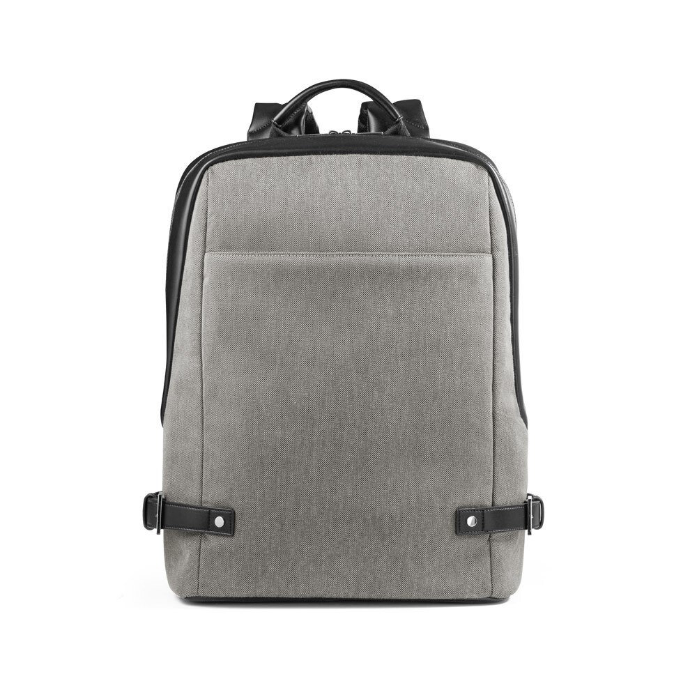 Sleek and structured, this fabric and PU backpack is built for daily commutes and business travel. The main compartment features imitation leather details with a padded sleeve for a laptop up to 15.6 inches, plus two zip pockets to keep essentials neatly organized. High‑quality metal fittings and smooth zippers add durability and a refined finish. Adjustable side straps double as aesthetic accents and practical supports for securing a jacket or guiding an earphone cord. Extra security comes from a rear anti‑theft pocket and a discreet hidden pocket on the front panel. A padded back and handle, along with a trolley strap, deliver comfortable carry options. Capacity up to 17L. Supplied in a non‑woven bag and includes a Quality Test Report.