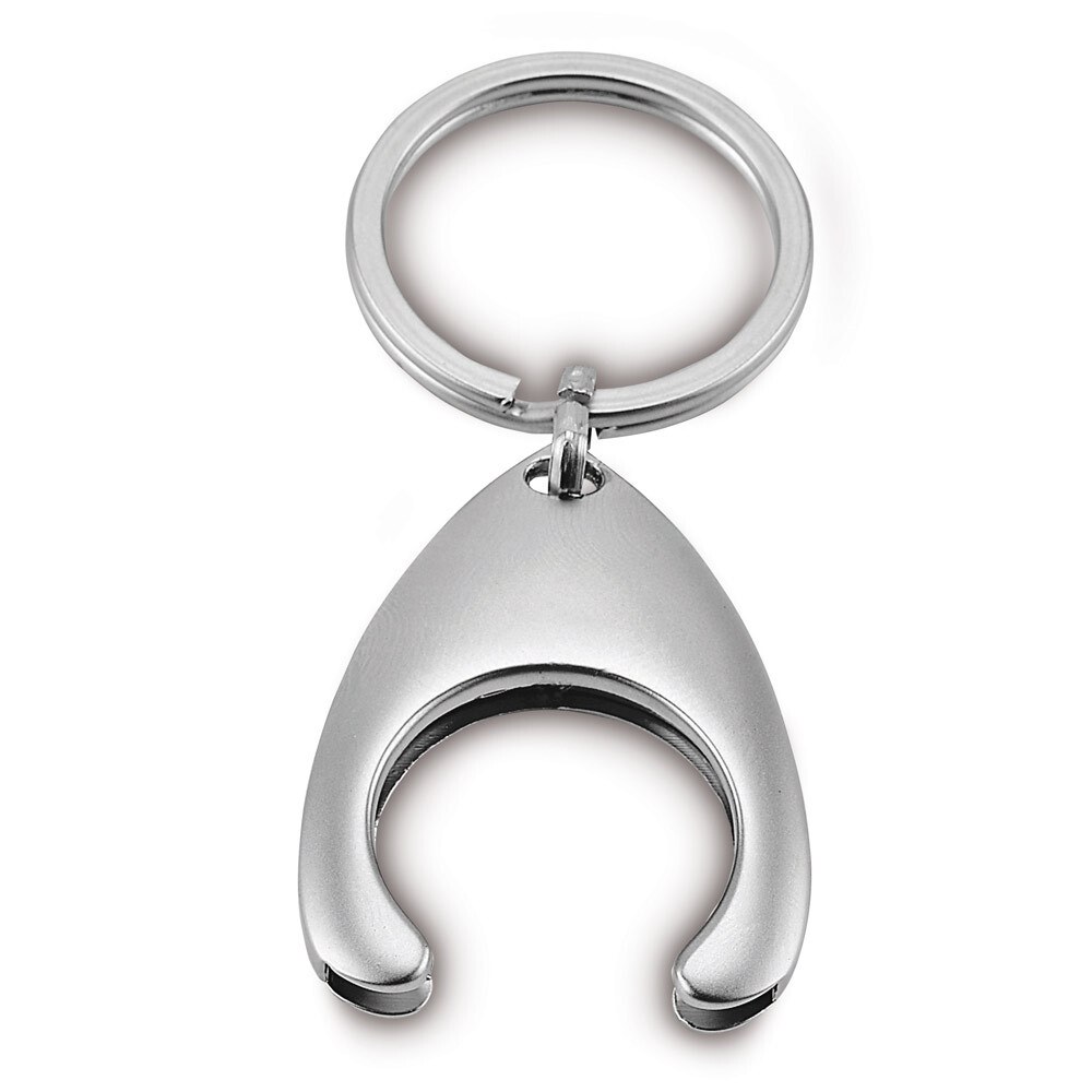 Elegantly designed with a sleek, silver finish, this coin-shaped keyring offers both style and functionality. Its unique shape doubles as a trolley coin, making it an essential companion for shopping trips. Crafted with durable metal, it promises longevity and resilience. Gift-ready, it arrives in a sophisticated black box, perfect for any occasion.