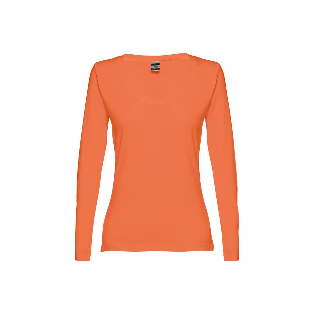 TH Clothes 30126 - Long-sleeved scoop neck fitted T-shirt for women. 100% carded cotton