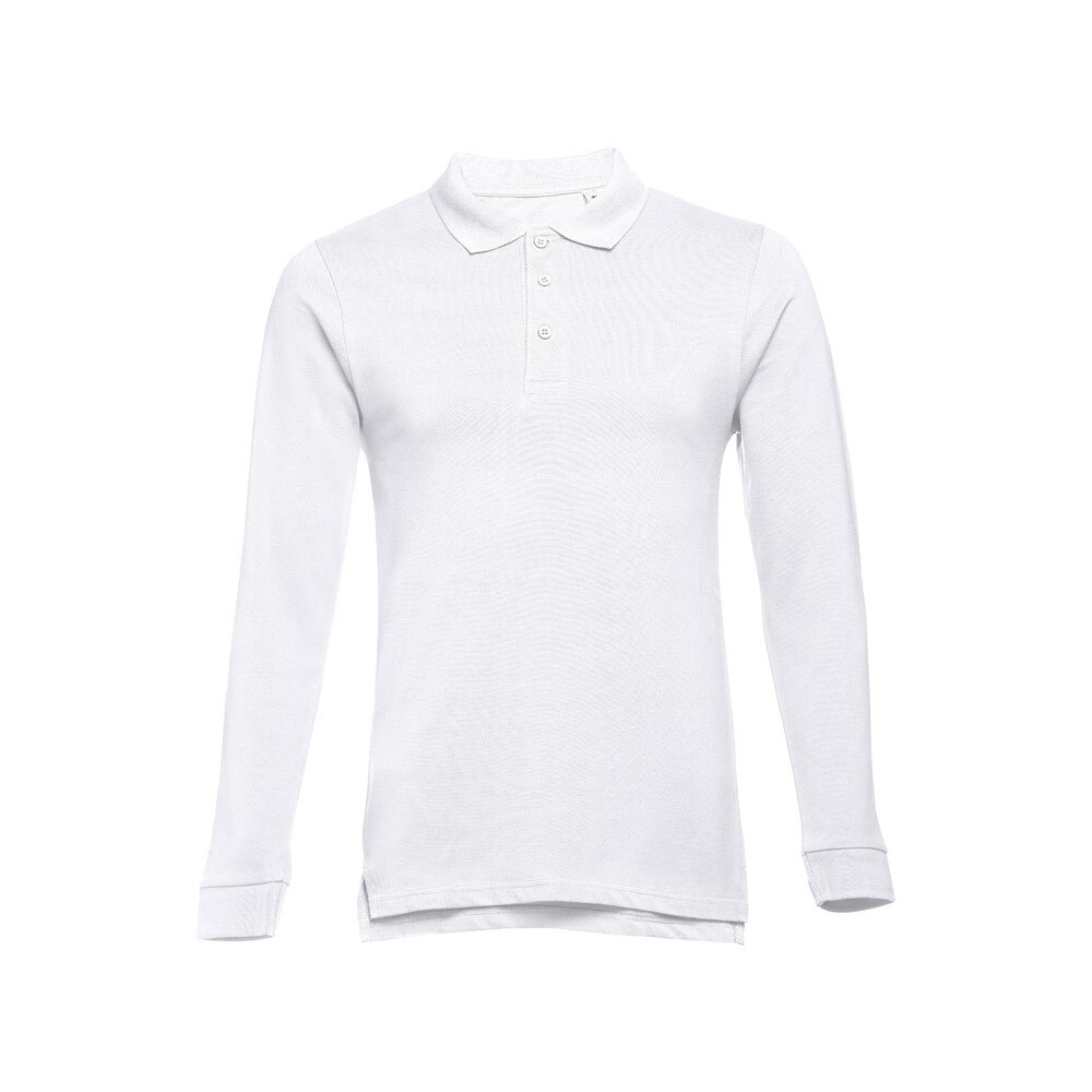 TH Clothes 30140 - Men's long-sleeved 100% cotton piqué polo shirt with removable label - White