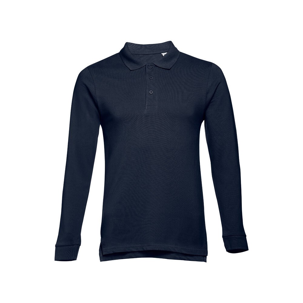 TH Clothes 30141 - Men's long-sleeved 100% cotton piqué polo shirt with removable label - Blue