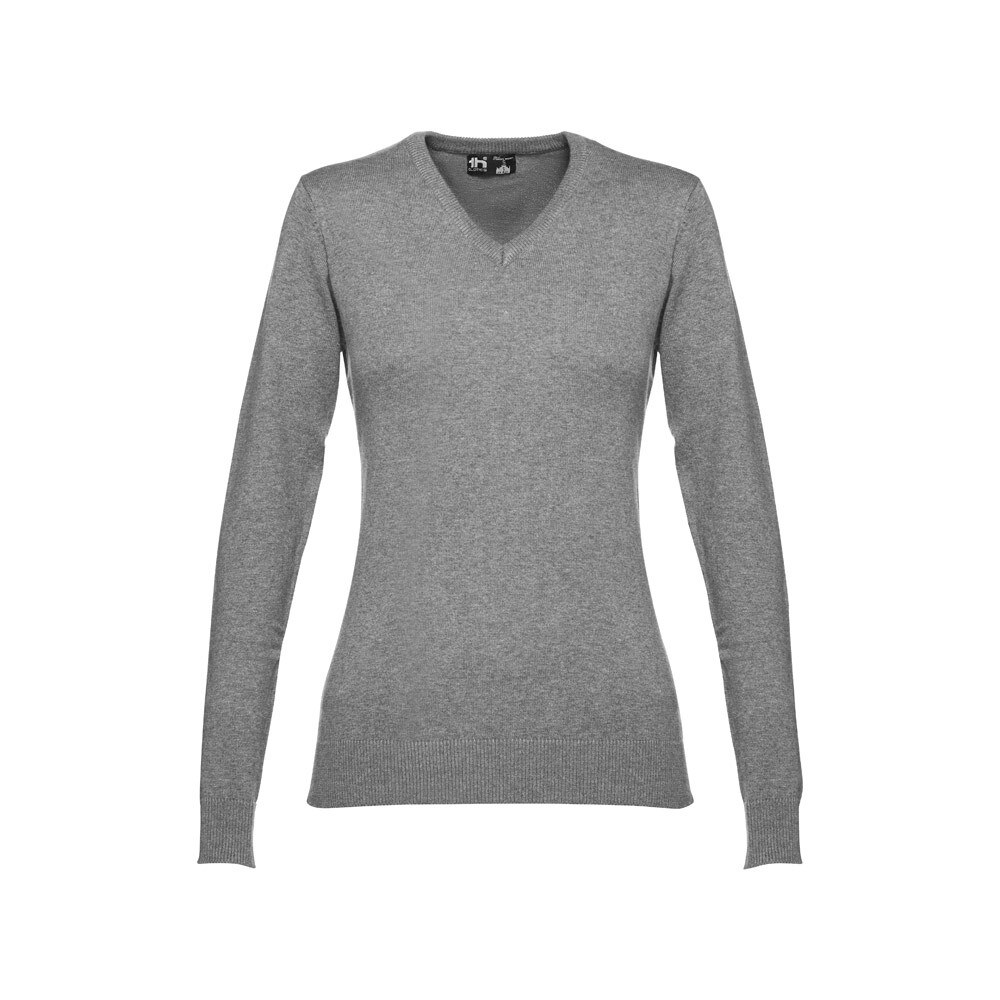 TH Clothes 30150 - V-neck pullover for women in cotton and polyamide - Heather Grey