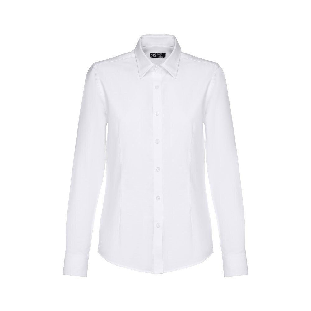 This women's long-sleeved oxford shirt offers a classic and tailored look. Crafted from a lightweight 130 g/m² cotton and polyester blend, it's designed for a comfortable, fitted silhouette with shaping darts on the front and back. The design features a traditional collar and a full front placket with seven pearl-coloured buttons. The sleeves are finished with a single pleat and adjustable cuffs with two buttons, ensuring a polished and customizable fit.