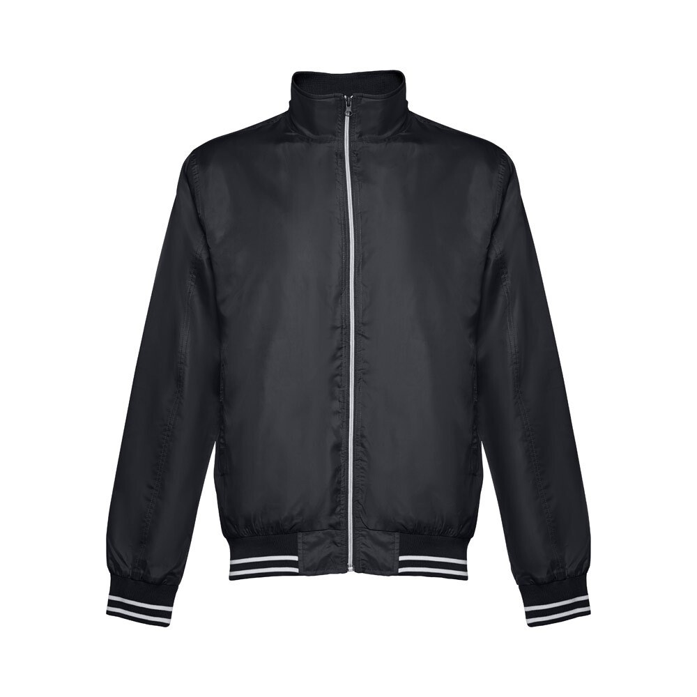 Sports jacket in 100% polyester (60 g/m²). With its modern cut, this sports jacket contains 2 front pockets and bicolour details. Zipped access at the back for easy customisation. Sizes: S, M, L, XL, XXL